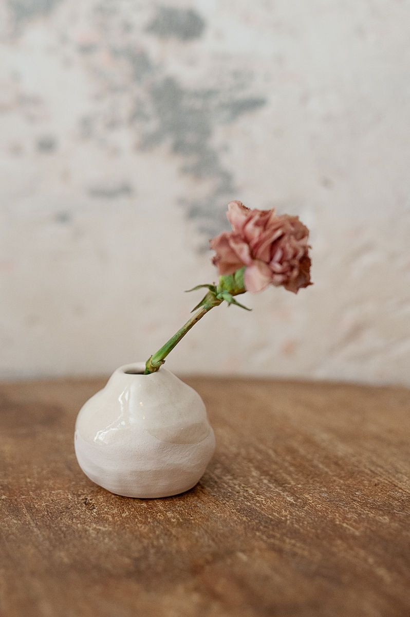 Florero de cerámica hecho a mano en España. Pieza única con formas redondas, aporta un toque original a tu hogar. Fabricado en loza de alta calidad, combina diseño y detalle artesanal.
