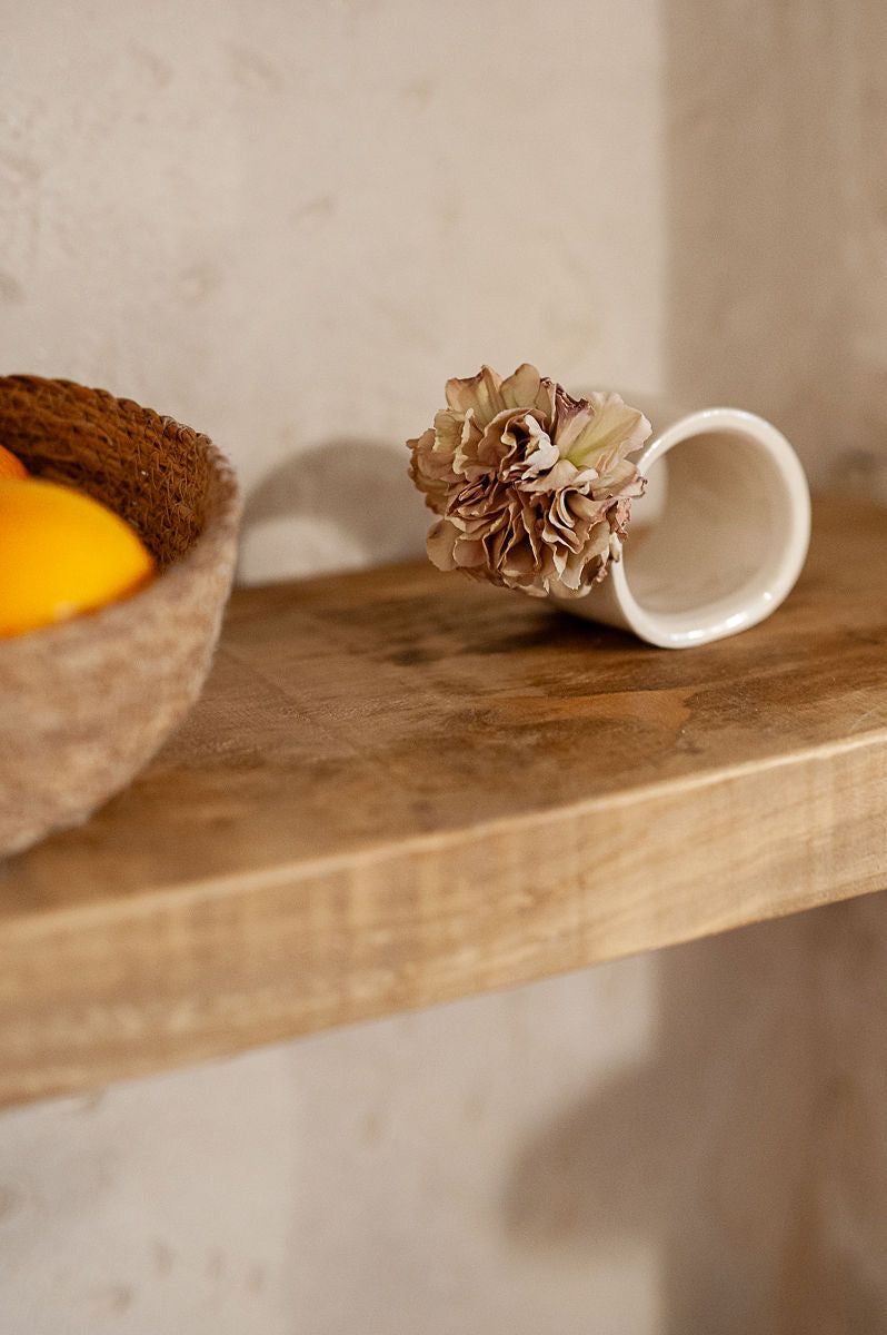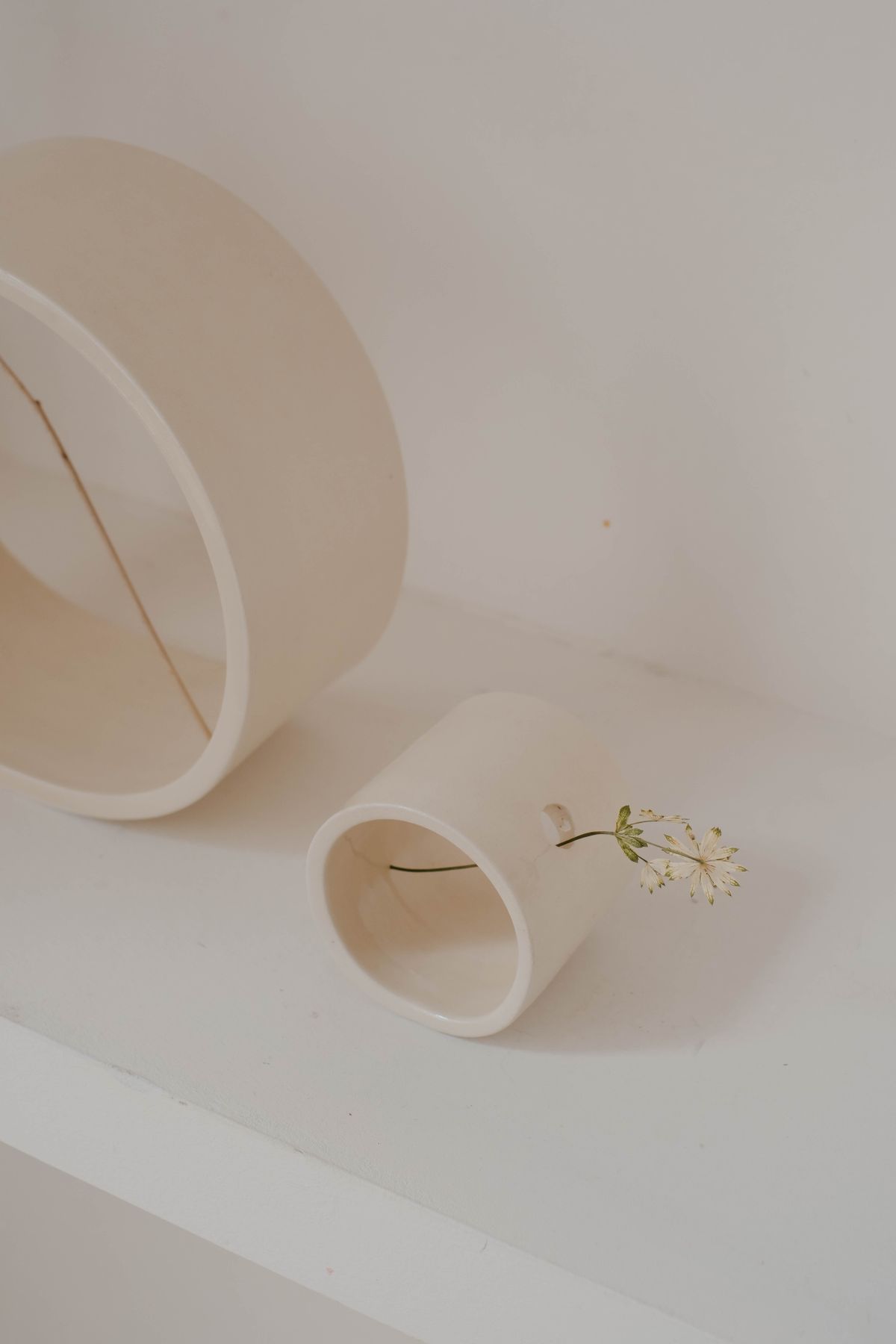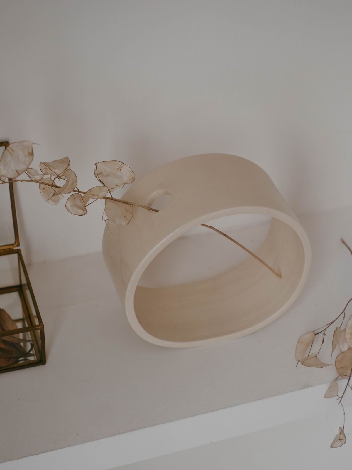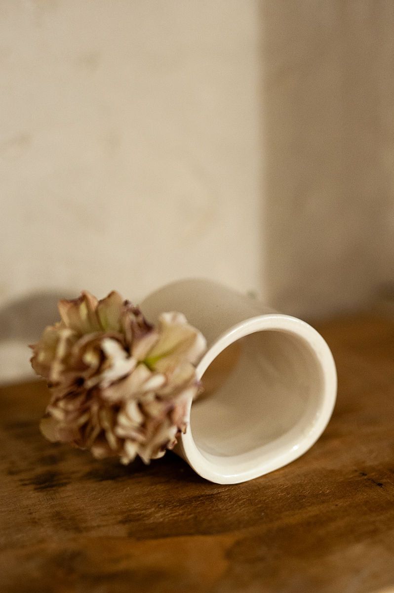 Florero de cerámica artesanal hecho a mano en España. Cada pieza es única, con forma de aro que permite mostrar tallo y flor por completo. Fabricado en loza de alta calidad, combina diseño original y detalle artesanal para decorar tu hogar con estilo.